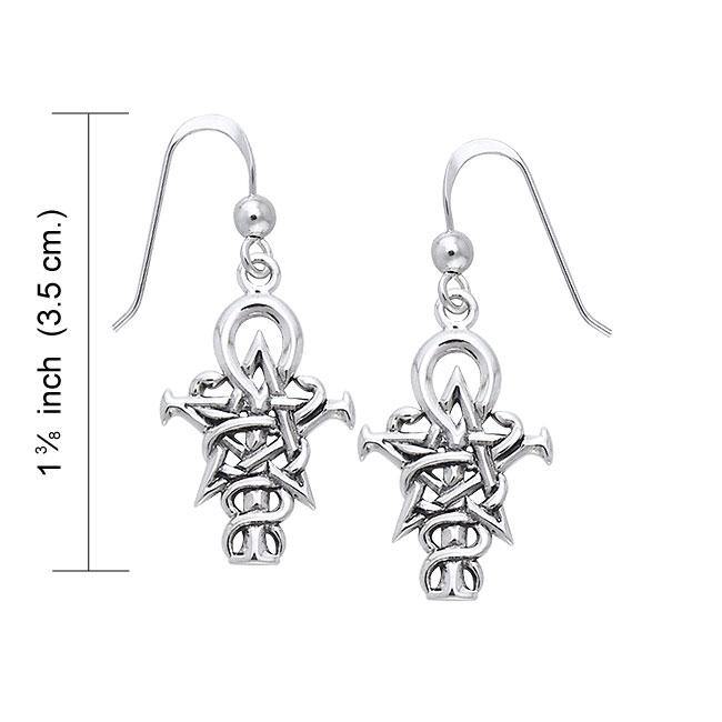 Wizardry Symbol Silver Earrings by Oberon Zell TER465 Penkhaduce Wizardry symbol containing a Pentagram, Ankh, and Caduceus.  Oberon Zell has been at the forefront of the Metaphysical community for many years. Through his numerous books and beautiful statuary Zell has created an immense following. Now Oberon Zell’s intricately detailed depictions...